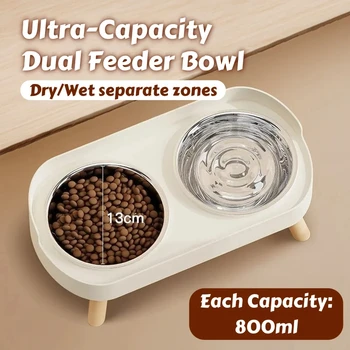 3 In 1 Pet Feeder Slow Feed Bowls Double Bowls Foldable With 5 Adjustable Height Suitable For Pets Of Different Heights