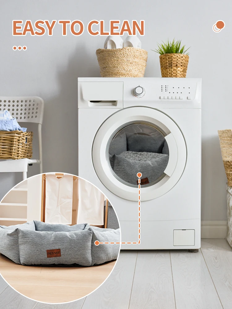 Spacious Machine-Washable Dog Bed with Removable Pillow – All-Season Cozy Kennel Sofa Bed for Small Medium Large Dogs, Non-Slip