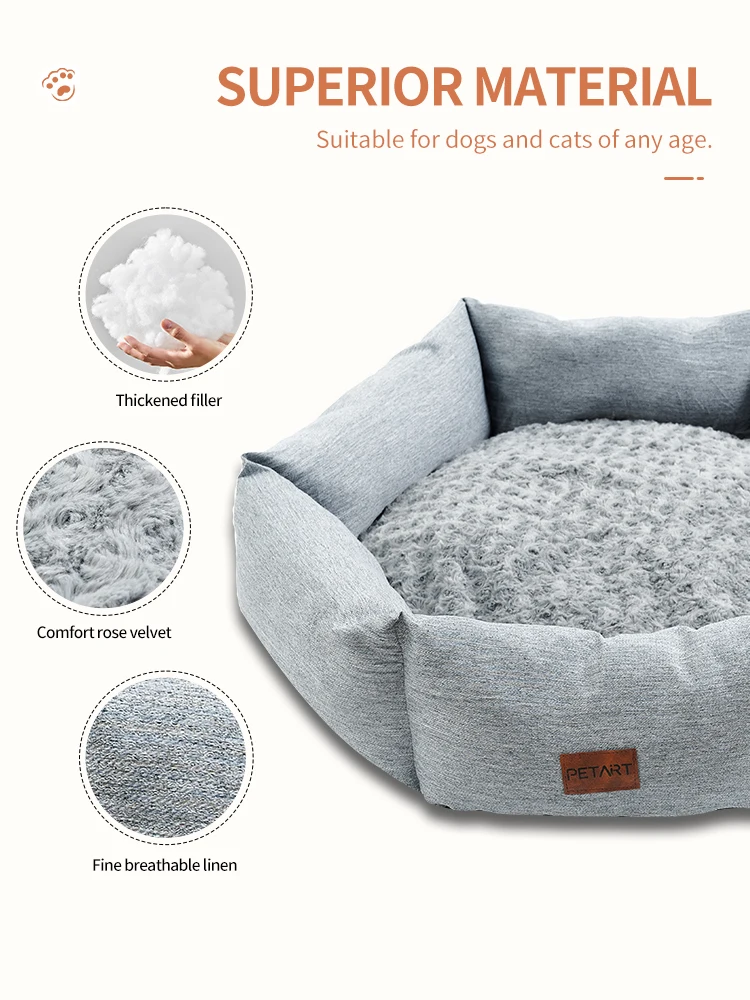 Thickened Filled Hexagonal Dog Bed,Donut Washable Pet Kennel,Rose Velvet Cat Bed,Durable Calming Down Dog Sofa for Indoor Travel